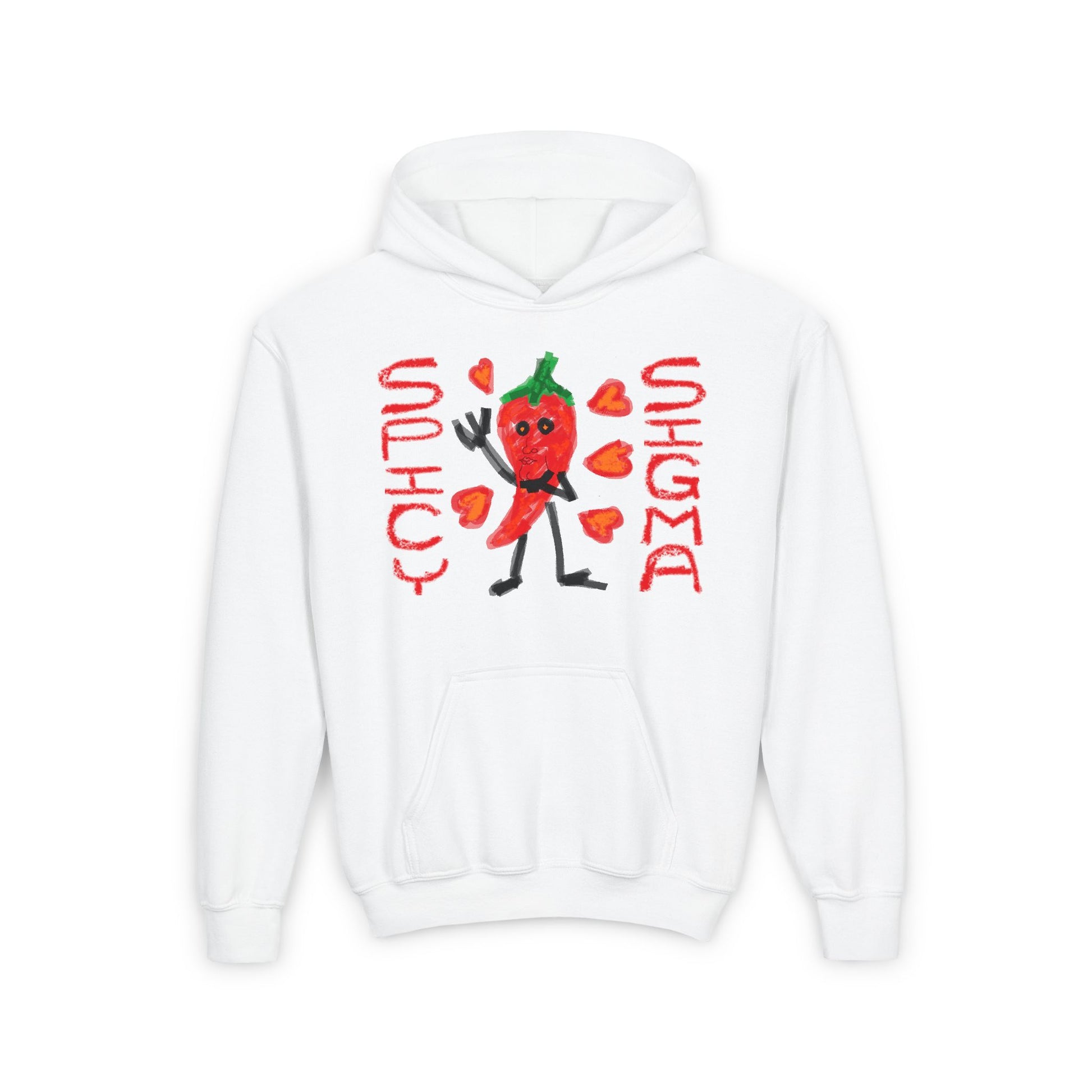 The youth SPICY SIGMA Hoodie is made of ultra-soft, preshrunk fleece that feels wonderful against the skin. The garment is 50% cotton 50% polyester with reduced lint buildup. This makes an excellent combination for printing. The front has a kangaroo pocket big enough for both hands. The neck is reinforced with twill taping.